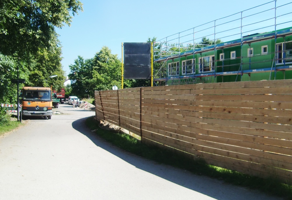 Brief von der Stadt an den Bezirksausschuss (BA): „Bei der vorgesehenen Aufstellung des Schulpavillons an der Fritz-Lutz-Straße 24 und den Änderungen im Bereich der Grünanlagen sowie Straßen und Wegeführung ist eine Tektur erforderlich“, also die „Korrektur eines genehmigten Bauplans“. Fehlplanung wäre in diesem Zusammenhang besser angebracht.