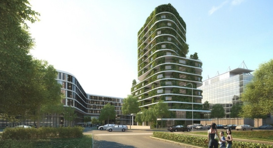 Am „Grünen Hochhaus“ soll laut Architektin Aika Schluchtmann „als unverwechselbarer Stadtbaustein die Fassade nicht nur nachhaltig begrünt, sondern als vertikaler Garten ausgebildet werden.“ Die Bepflanzung soll geschossweise erfolgen und maximal drei Meter hoch wachsen. Also ein Koloss mit Klimaanlage. Für die Umsetzung ist laut Stadtgestaltungskommission eine Änderung des seit Mai 1971 rechtsverbindlichen Bebauungsplans erforderlich.