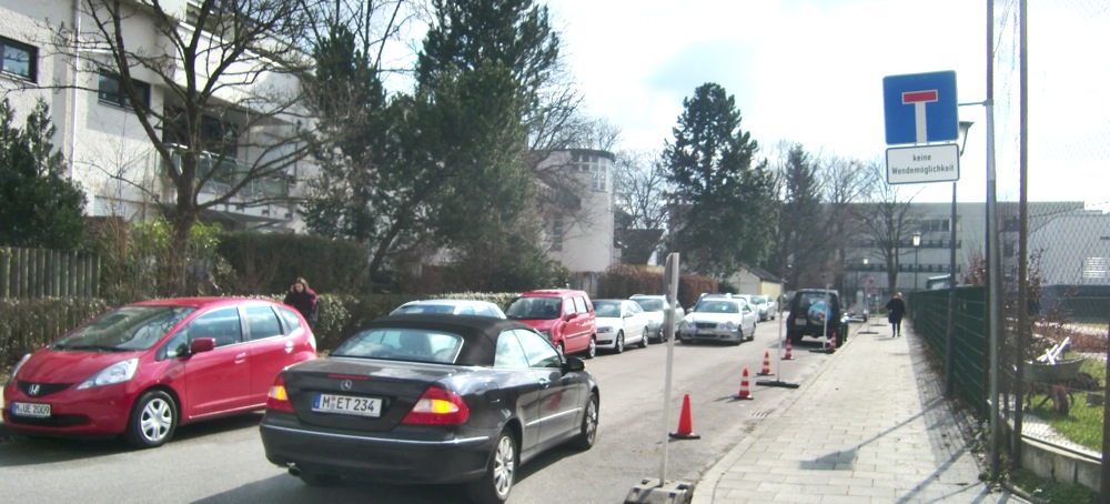 Die verkehrsrechtliche Anordnung des Kreisverwaltungsreferats (KVR) billigten die Mitglieder des Bezirksausschusses auf Empfehlung des Untergremiums Verkehr einstimmig. Der Hintergrund: Bring- und Holverkehr der Eltern von Schülern verursachen laut den städtischen Experten „wegen der Enge der Straße und des fehlenden Wendehammers regelmäßig Manöver mit sehr vielen Rangiervorgängen, wobei die wendenden Fahrzeuge ständig den vorhandenen Privatgrund benutzen und diesen dabei häufig beschädigen.“