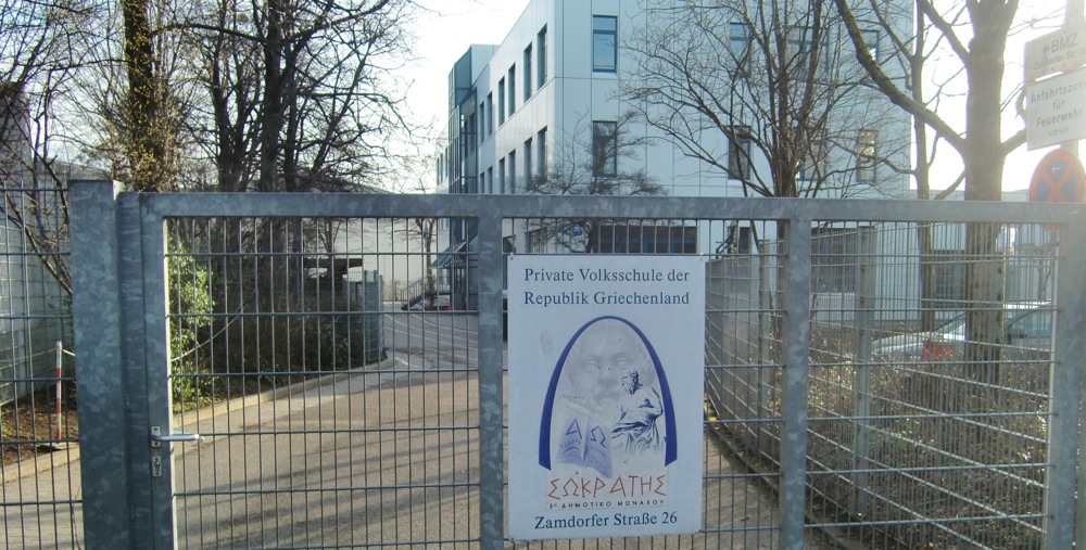 Naheliegend, dass die nach dem Philosophen Sokrates, dem „Erfinder“ des strukturierten Dialogs, auch als „Hebammenkunst“ bezeichnet, benannte Bildungsstätte mit Griechenland zu tun hat. Die voll ausgebaute Grund- und teilausgebaute Hauptschule fungiert als griechische Privatschule. Im vergangenen Schuljahr haben 13 hauptamtliche Lehrkräfte 167 Mädchen und Buben unterrichtet.