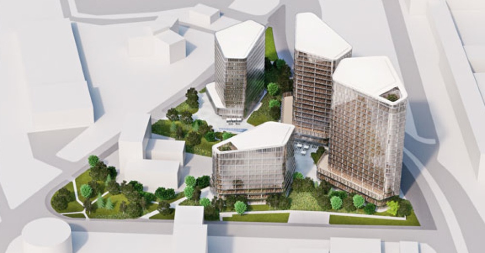 Nunmehr kann die städtebauliche Neuausrichtung des Bereichs mit einem Hochhausensemble als neuem Stadteingang auf Grundlage des Siegerentwurfs der spanischen Architekten Nieto Sobejano mit vier markanten Hochhäusern realisiert werden. Die Türme haben jeweils fünfeckige Grundrisse mit Sockelflächen sowie flach geneigte Pultdächer.