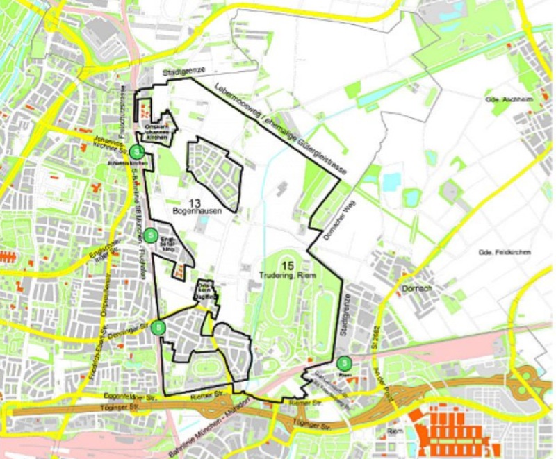 Zur Siedlungsentwicklung im Münchner Nordosten (SEM) auf einem 600 Hektar großen Gelände jenseits der S-Bahnlinie zum Flughafen – eingerahmt von der S8-Trasse zwischen Daglfing, Englschalking und Johanneskirchen, den Grenzen von Unterföhring und Aschheim, dem Lebermoosweg und der Riemer Straße – hatte die Stadt Anfang August drei Varianten als vorbereitende Untersuchungen präsentiert. In einer „interfraktionellen Stellungnahme zum Einleitungsbeschluss der Öffentlichkeitsbeteiligung“ billigte der Bezirksausschuss jetzt die Einleitung des Verfahrens. In einem kompakten Positionspapier wurden fünf Schwerpunkte fixiert, verbunden mit Fragen und Forderungen.