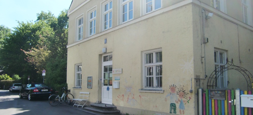Geschichte / Gegenwart: Die Muspillistraße 27 wurde anno 1824 als erstes Schulgebäude in Oberföhring errichtet. Heute beherbergt das im Besitz der Stadt befindliche und unter Denkmalschutz stehende Haus zwei Einrichtungen. Im Erdgeschoss befindet sich der Kinder- und Jugendtreff „Muspilli“, im ersten Obergeschoss ist ein privater Kindergarten untergebracht. Eine grundlegende Sanierung des Hauses ist unabdingbar.