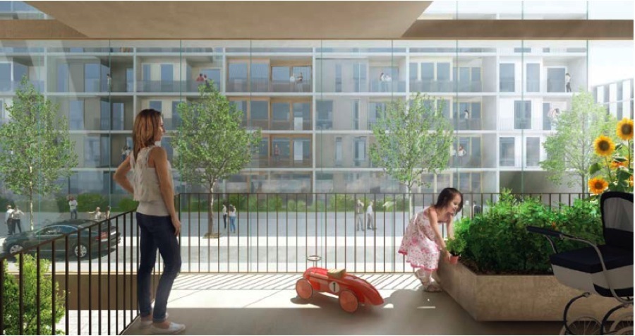 Dazu kommen in beiden Blöcken im Erdgeschoss jeweils ein „Haus für Kinder“ mit Platz für mehr als 100 Mädchen und Buben.