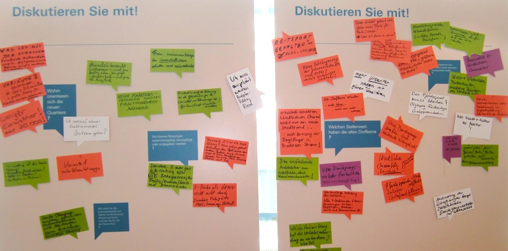 Beim Bürger-Workshop zu den drei Planungsvarianten mit den phantasievollen Bezeichnungen „Die Perlenkette“ (eine Entwicklungsachse entlang der S8), „Neue Quartiere am Hüllgraben“ (Brücken­schlag nach Riem) und „Küstenlinie“ (Landschaft und Stadt werden dabei verzahnt) gab es zuhauf Anregungen und Vorschläge an die Adresse des Planungsreferats. Fragen über Fragen wurden gestellt, teils massive Kritik an den städtischen Ideen und Vorstellungen geübt.