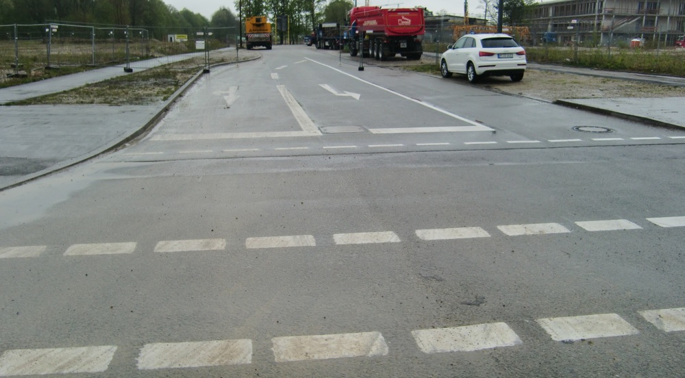 Beleg für den immensen Baustellenverkehr ist eine Maßnahme des Kreisverwaltungsreferats. An den Einmündungen der künftigen Ruth-Drexel- und der Jörg-Hube-Straße wurden vor kurzem Sperrschilder mit dem Zusatz „Baustellenfahrzeuge frei“ aufgestellt.