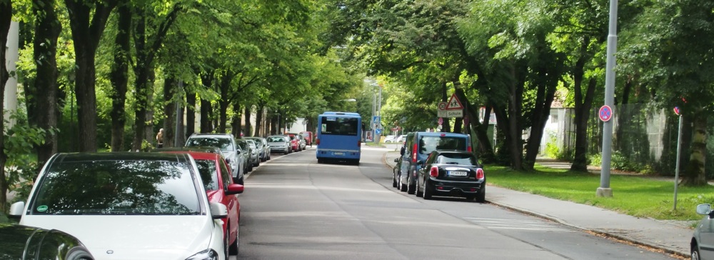 Zur die Busspur auf der Denninger Straße zwischen Newton- und Richard-Strauss-Straße durch Wegfall des Parkstreifens auf einer Länge von 460 Metern heißt es in dem Vorstoß: