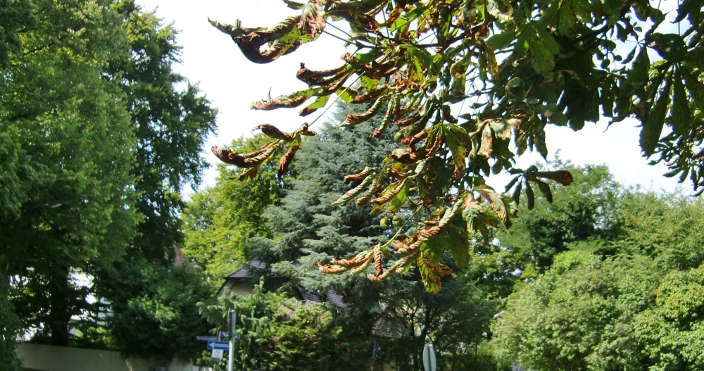 Wo immer man auch in Bogenhausen ist, ob in einem Biergarten oder beispielsweise bei einem Spaziergang durch den Normannenpark, es fällt einem sofort auf: Die meisten Blätter von Kastanien verfärben sich schon nach und nach braun, welken, die Bäume werfen sie ab, rings um die Stämme sammelt sich eine Schicht Laub. Ursache sind die Raupen der (Kastanien)-Miniermotte, die sich in erster Linie weiß blühende Rosskastanien als Wirt suchen. Ein Problem, das Bayern weit besteht.