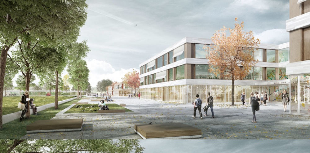 Neben dem fünfzügigen Gymnasium werden auf dem Areal an der Mitterfeldallee eine Grundschule für maximal 400 Kinder, ein Hort für Kinder, eine Mensa, eine Vierfach-Turnhalle mit anschließendem Zugang zum Sportpark, großzügige Außenflächen mit Höfen samt „Boulevard“ sowie eine Tiefgarage mit 150 Stellplätzen gebaut. Im kommenden Juli sollen die Arbeiten starten. In den kommenden Schuljahren 2018/19 und 2019/20 gibt es Vorläuferklassen, die im bis dahin fertig gestellten Gymnasium Ismaning unterrichtet werden.