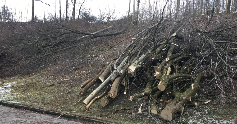 100 Bäume? 85 Bäume – erstaunlich: Sieht man sich vor Ort am Hang entlang des Hubschrauberlandeplatzes östlich des Krankenhauses um, wo im Anschluss der Anbau errichtet wird, müssen wohl weit mehr als 200 stämmige Bäume abgeholzt werden – wohlgemerkt Bäume, keine dürren Bäumchen, keine Sträucher und kein Gestrüpp. Fotos belegen das!