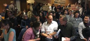 Mehr als 100 künftige Bewohner des Prinz-Eugen-Parks (PEP) waren zur Sondersitzung des Bezirksausschusses wegen der Schul- und Kinderbetreuungs-Situation im PEP sowie wegen der Personalprobleme in der Kita Else-Lasker-Schüler-Straße gekommen. Foto: hgb