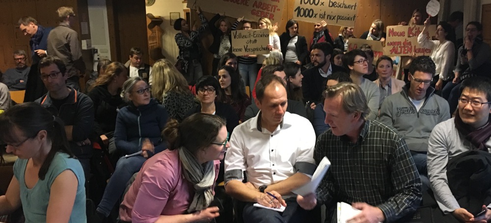 Die Vorwürfe • Kommentierende Schlagworte von Versammlungsleiter Xaver Finkenzeller, CSU-Fraktionsvorsitzender im Kommunalparlament: „Ihre Zahlen sind geschönt“, Ihre Zahlen sind ein Hexenwerk“, „Münchenhausen war nichts dagegen, man muss sich schämen“, „das ist eine Frechheit, ein Skandal“, „die Stadt hat Bockmist gebaut, hat total versagt“, „die Verantwortung wurde und wird zwischen den Referaten hin- und hergeschoben“ und „der Versuch, Bürger gegen­einander auszuspielen, ist unverschämt“. Ein Zitaten-Paket, das heftiger wohl kaum geht und das die ungeteilte Zustimmung der rund 120 gekommenen Mütter und Väter wie auch der Lokalpolitiker fand.