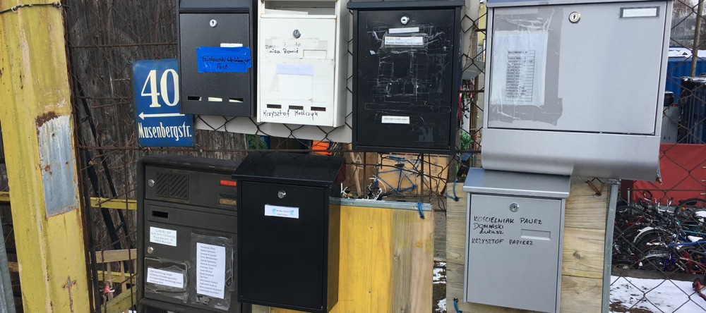 Musenbergstraße 40 in 81929 Johanneskirchen: Sieben von acht Briefkästen mit Dutzenden Namensangaben. Das Areal hinter dem Zaun ist voller Fahrräder. Foto: hgb