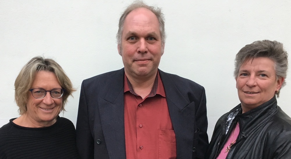 Bezirksausschuss-Vorsitzende Angelika Pilz-Strasser vereidigte Wolfgang Tassilo Thomma als neues Mitglied im Kommunalparlament. Rechts SPD-Fraktionssprecherin Karin Vetterle. Foto: hgb