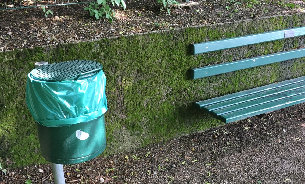 In den durch die Verwaltung des Englischen Gartens betreuten Park- und Gartenanlagen auf Bogenhauser Gebiet gibt’s schon seit Jahren grüne lackierte Mülleimer mit einem stabilen Gitterdeckel samt Griff zum Öffnen – eben krähensicher, eben mustergültig.