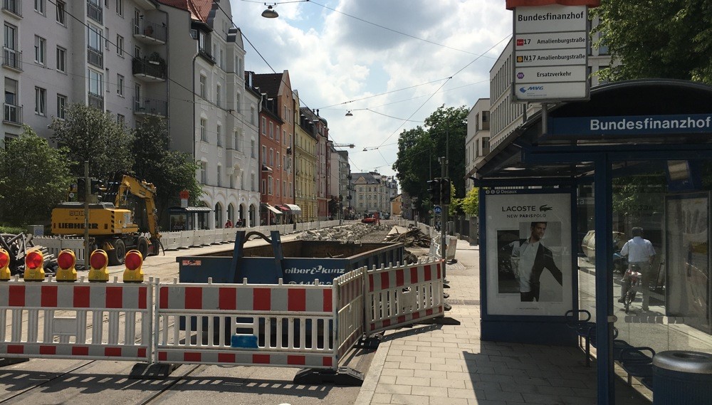 Die Tram-Baustelle umfasst in den Sommerferien zusätzlich den Herkomerplatz. Dort stehen zwei Weichen und eine Kreuzung zur Erneuerung an. Somit muss – neben der Tram 17 – nun auch die Linie 16 Richtung Effnerplatz und St. Emmeram eingestellt werden. Die Auswirkungen im Überblick: