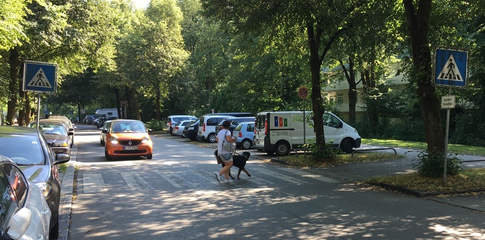 Und weiter: „Die Verkehrsstärken für die Empfehlung eines Fußgängerüberwegs liegen bei mindestens 50 Fußgängerqueren pro Stunde und bei mindestens 200 motorisierten Fahrzeugen pro Stunde. Die ermittelten Fakten an der Freischützstraße 106 erfüllen diese Mindestvorgaben in keiner Weise. In Tempo-30-Zonen sind Fußgängerüberwege entbehrlich und sollen nicht eingerichtet werden.“
