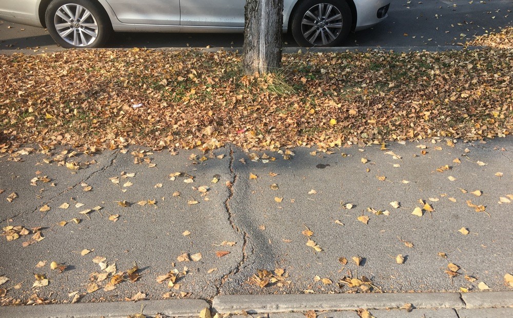 Von einer Wurzel hoch gedrückter Asphalt auf dem Radweg an der Englschalkinger Straße: Wer drüber fährt, denn hebt’s aus dem Sattel oder dem verreißt es den Lenker. Foto: hgb