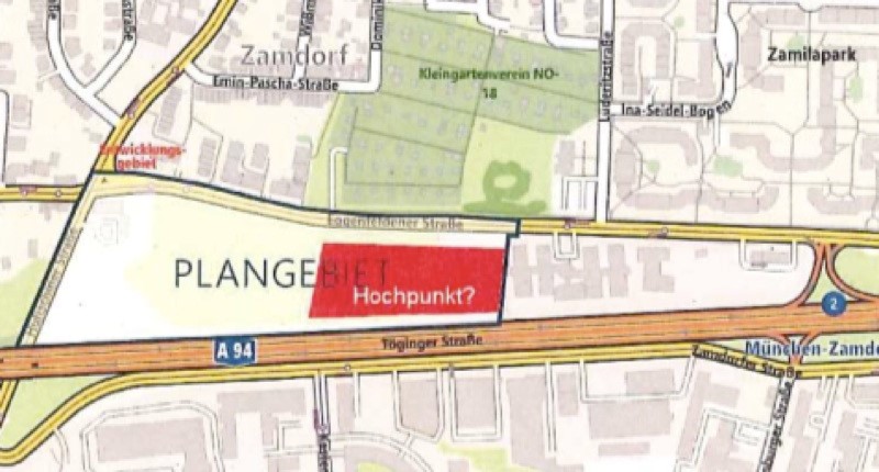 Die Stadt soll in der künftigen Siedlung die Verschiebung des geplanten Hochhauses von der Hultschiner – / Ecke Eggenfeldener Straße in Richtung Osten auf etwa Höhe Eggenfeldener- / Lüderitzstraße prüfen – diesen vom Bezirksausschuss ans Rathaus weitergeleiten Antrag eines Bürgers hat das Planungsreferat jetzt abgelehnt.