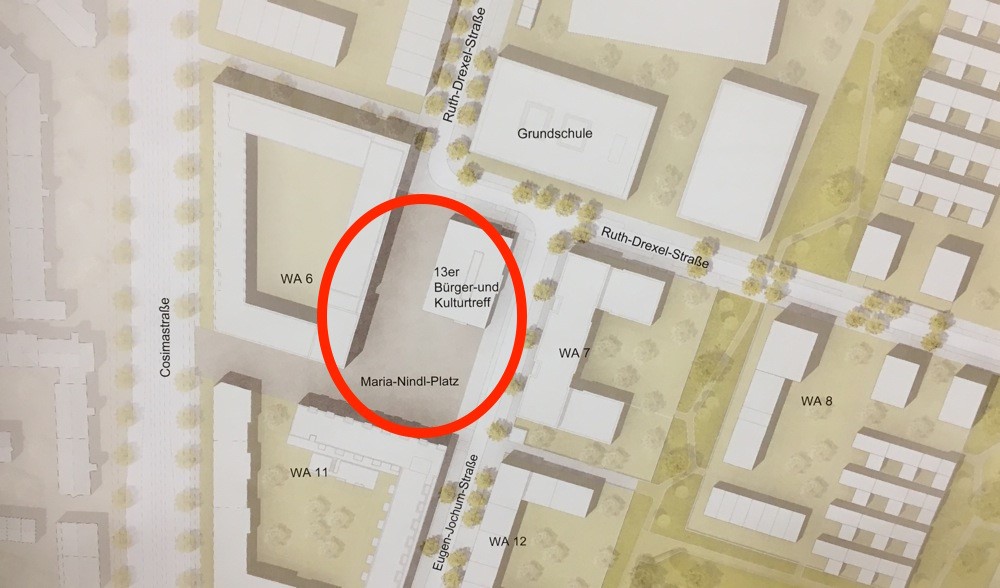 Rund 3900 Quadratmeter groß ist der L-förmig um das künftige KulturBürgerHaus (KBH) zu bauende Maria-Nindl-Platz im Prinz-Eugen-Park an der Cosimastraße. Würden alle bei einer vom Baureferat bestens organisierten Bürgerbeteiligung – weit mehr als 100 Anwohner und Nachbarn waren gekommen – geäußerten, größtenteils kreativen Wünsche und Vorschläge realisiert, müsste der Platz mindestens drei Mal so groß sein. Und letztlich ist alles natürlich eine Frage der Kosten.