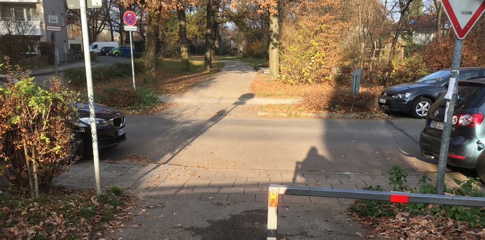Einen Zebrastreifen über die Buschingstraße auf Höhe Scherfweg / AWO-Kindergarten zum Schreberweg in der Parkstadt Bogenhausen regte eine Bürgerin per Antrag im Bezirksausschuss an. Doch die Lokalpolitiker beschlossen: Kein Handlungsbedarf. Denn laut Polizei können in Tempo-30-Zonen keine Zebrastreifen angebracht werden. Außerdem habe es „an dieser Stelle bis heute keinen einzigen Unfall“ gegeben. Ersterem widersprechen Verkehrsexperten, letzteres steht die konträre Aussage der Frau entgegen.