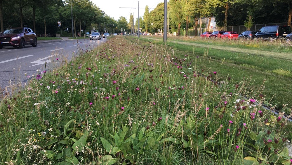 Antwort zu den Wünschen: „Bereits seit langem gilt für das Baureferat / Gartenbau die Zielsetzung, an geeigneten Stellen im Straßenbegleitgrün arten- und blütenreiche Vegetationsbestände aufzubauen und zu pflegen. Bei Neu- und Umbaumaßnahmen werden sich ergebene Chancen genutzt, wie Riem, in der Moosacher- und Schleißheimer Straße.“ Aber: „Um auf bestehenden Streifen des Straßenbegleitgrüns – wie in der Effner- und der Englschalkinger Straße – artenreiche Wildkräuterwiesen dauerhaft etablieren zu können, würde ein Austausch des vorhandenen nährstoffreichen Oberbodens in den oberen 15 bis 20 Zentimeter gegen nährstoffarmes Substart erfordern. Der Umbau würde einen hohen finanziellen und organisatorischen Aufwand sowie der Entsorgung werthaltigen Oberbodens bedeuten. Im Straßenbegleitgrün mit bestehenden Alleebäumen, wie im östlichen Teil der Englschalkinger- und in der Richard-Strauss-Straße, würde ein Bodenaustausch und die Bodenvorbereitung für Ansaaten zu Schädigungen der Baumwurzeln führen und kann daher keinesfalls empfohlen werden.“