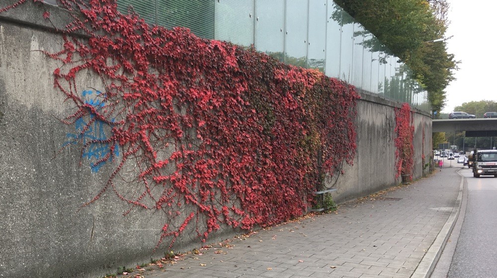 Die Behörde teilte dem Kommunalparlament erklärend mit: „Am Fußpunkt der Stützwände entlang der südlichen Auffahrtsrampe gibt es auf beiden Seiten mehrere Pflanzbereiche, die mit Wildem Wein beziehungsweise Efeu bepflanzt und mit Metallbügeln gegenüber dem Gehweg geschützt sind. Da auf Grund der räumlichen Gegebenheiten die Pflanzbereiche jedoch nur sehr klein ausfallen können, ist der Begrünungserfolg je nach Lage des Pflanzbeets unterschiedlich. Bei begünstigteren Standorten ist die Begrünung bereits weit fortgeschritten, bei ungünstigeren Standorten entwickelt sich die Begrünung langsamer. Das Anbringen von Rankhilfen verbessert die Situation nicht, da sowohl Wilder Wein als auch Efeu selbstklimmende Kletterpflanzen sind, die sich ohne Rankhilfen mittels Haftscheiben direkt an den Wänden halten können.