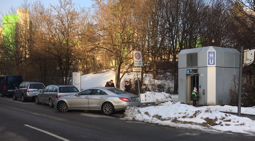 Die zwei Behindertenparkplätze am Klinikum Bogenhausen sind wegen der Arbeiten für den Erweiterungsbau entfallen, sollen nach dem Willen der Lokalpolitiker schnell wieder eingerichtet werden, und zwar direkt am Zugang zum Aufzug. Foto: hgb