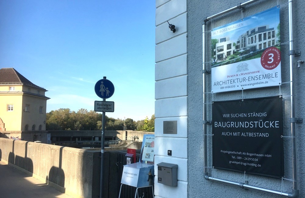 Eine etwa 1,2 mal zwei Meter große Werbetafel eines Immobilienunternehmens am Oberföhringer Wehr, am Haus Max-Halbe-Weg 10, ist einem Münchner, Aktivist von „Wildfleck“, ein Dorn im Auge. Gegen die Anbringung – „ich bin Mitbesitzer des Landschaftsschutzgebiets Isarauen“ – klagte der Mann. Allerdings vergeblich. Das Amtsgericht hatte ihn nicht als „klagebefugt“ erachtet.