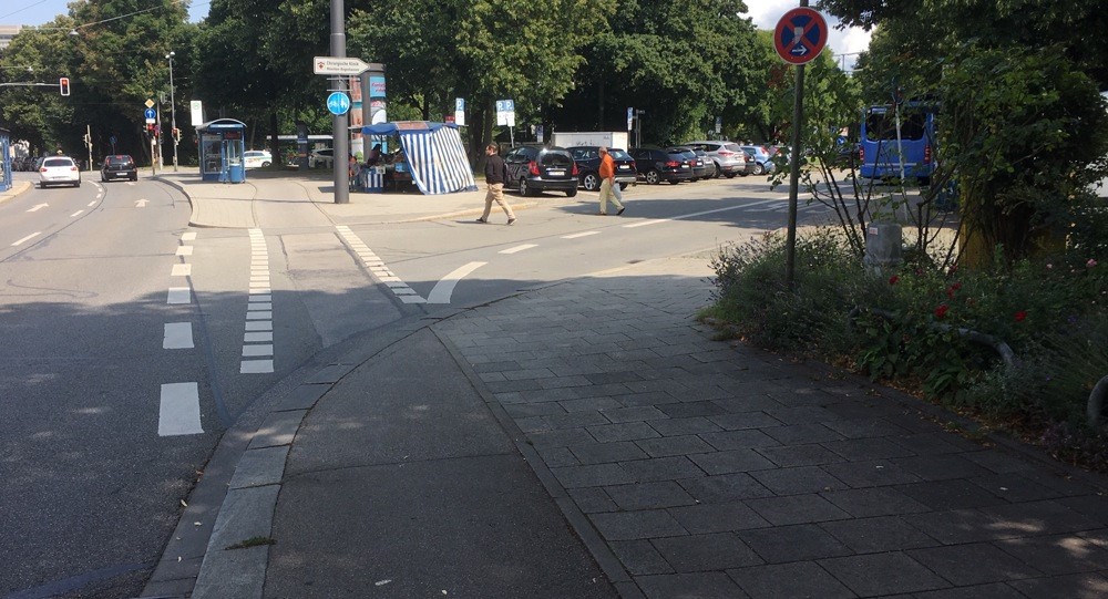 So forderte Gunda Krauss, Radbeauftragte im Stadtbezirk von den Grünen, die Situation am Herkomerplatz bei der Einmündung an der Denninger Straße zu entschärfen. Wenn man nämlich mit dem Rad von der Montgelasstraße kommend in Richtung Effnerplatz unterwegs ist und die Abbiegung zur Denninger Straße queren will, würden manche Autofahrer übersehen, dass Radfahrer geradeaus weiterfahren.