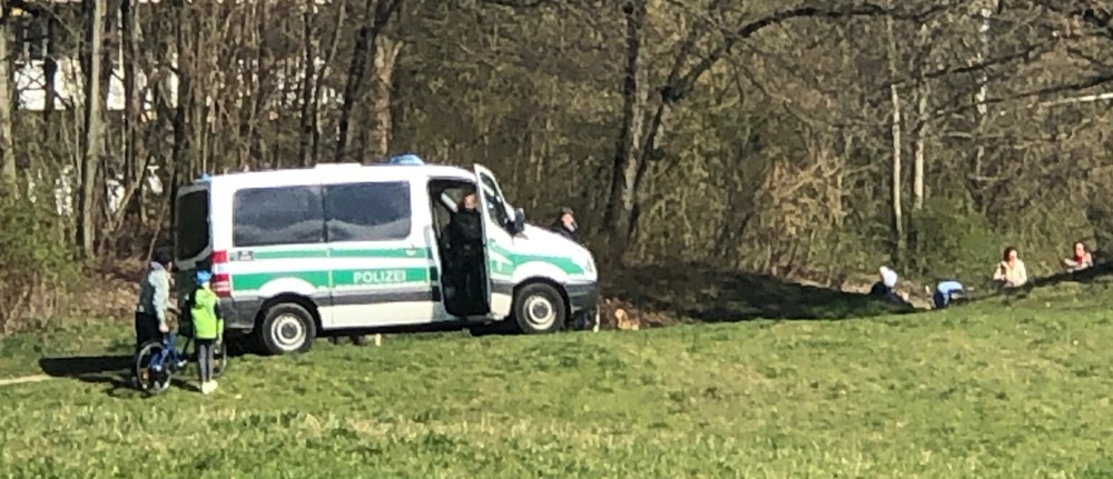 Frühling im Freien: Polizeikontrolle im Denninger Anger. Foto: hgb