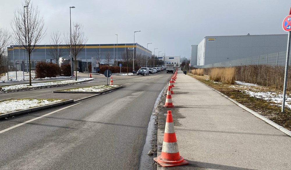 Weitere Maßnahmen wurden im Sommer 2021 ergriffen: Es ergingen Informationen an alle Subunternehmer / Fahrer, nicht auf dem Geh- und Radweg zu parken; ein Security-Mitarbeiter ist regelmäßig Präsenz vor Ort; entlang der Straße werden zeitweise Pylonen aufgestellt, um dadurch zusätzlich auf das Parkverbot auf dem Geh- und Radweg hinzuweisen.