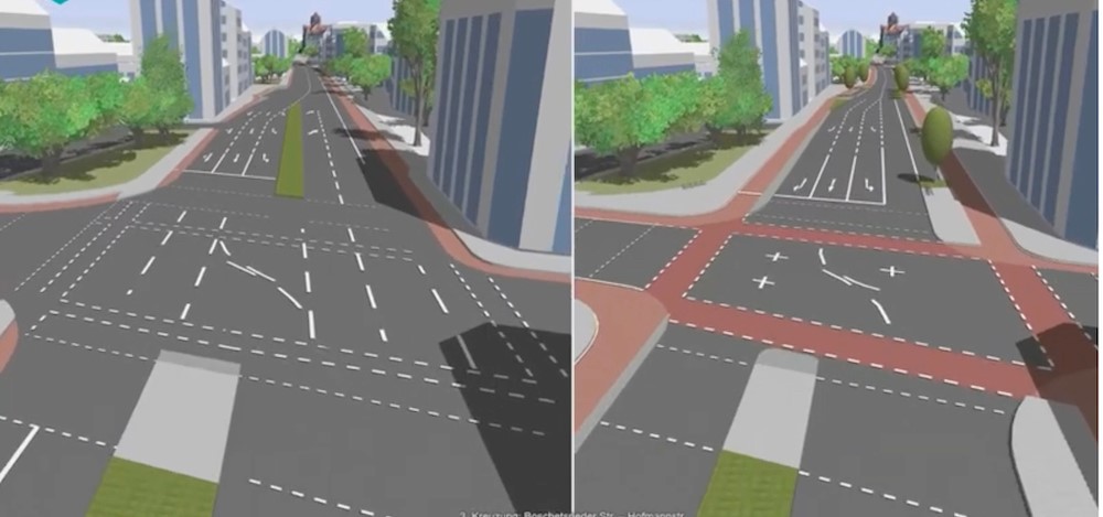 Der Hintergrund für die Bewerbung: Der Stadtrat hat 2019 das Bürgerbegehren Radentscheid übernommen. Nach und nach sollen in etwa 40 Straßen auf beiden Seiten neue, breitere oder besser markierte Radwege entstehen. Bevor die Umgestaltung beginnt, stellt das Mobilitätsreferat bei Informationsveranstaltungen den Anwohnern, Gewerbetreibenden und Bezirksausschüssen verschiedene Varianten vor. Auf der Basis des „Digitalen Zwillings“, eines digitalen 3D-Stadtmodells, können die Veränderungen anschaulich erläutert werden. Ein Beispiel findet man unter dem Link https://bit.ly/3nOfcSz.