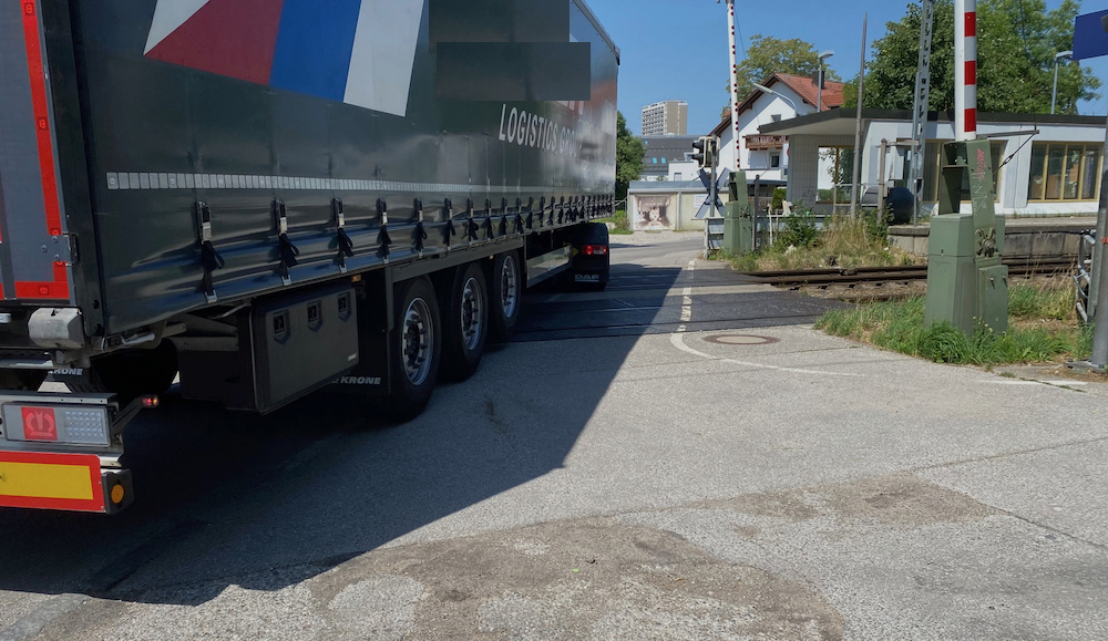 manche Lastwagen fahren gar auf dem Fuß- / Radweg. Foto: hgb