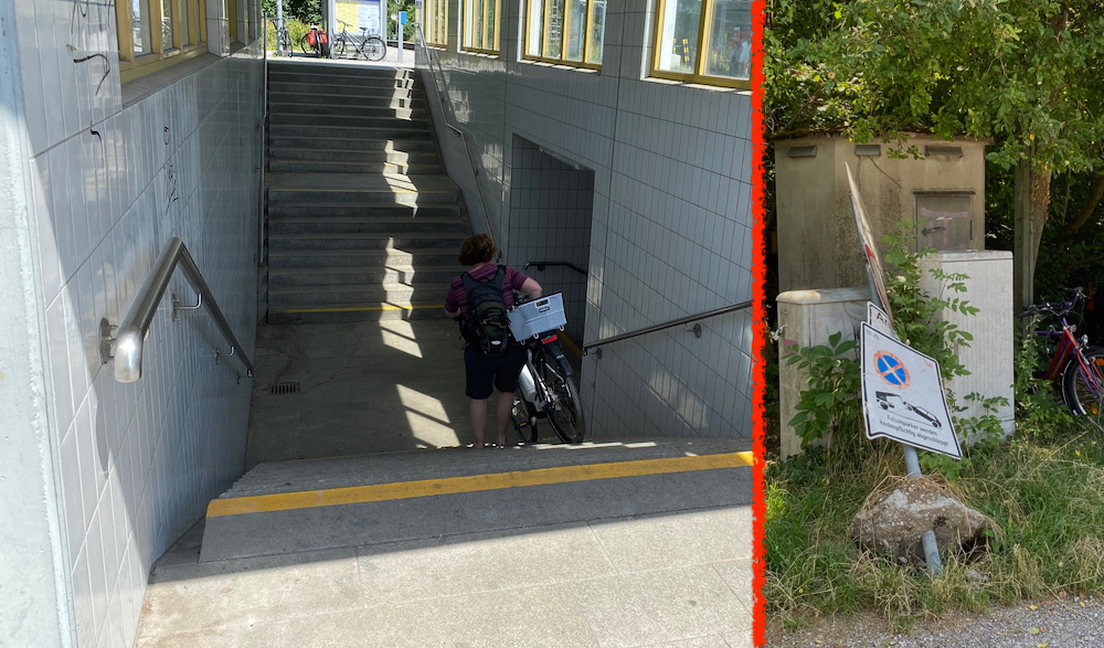 die Unterführung tragen, es gibt keine Rampe. Beschädigungen und Schmierereien prägen die