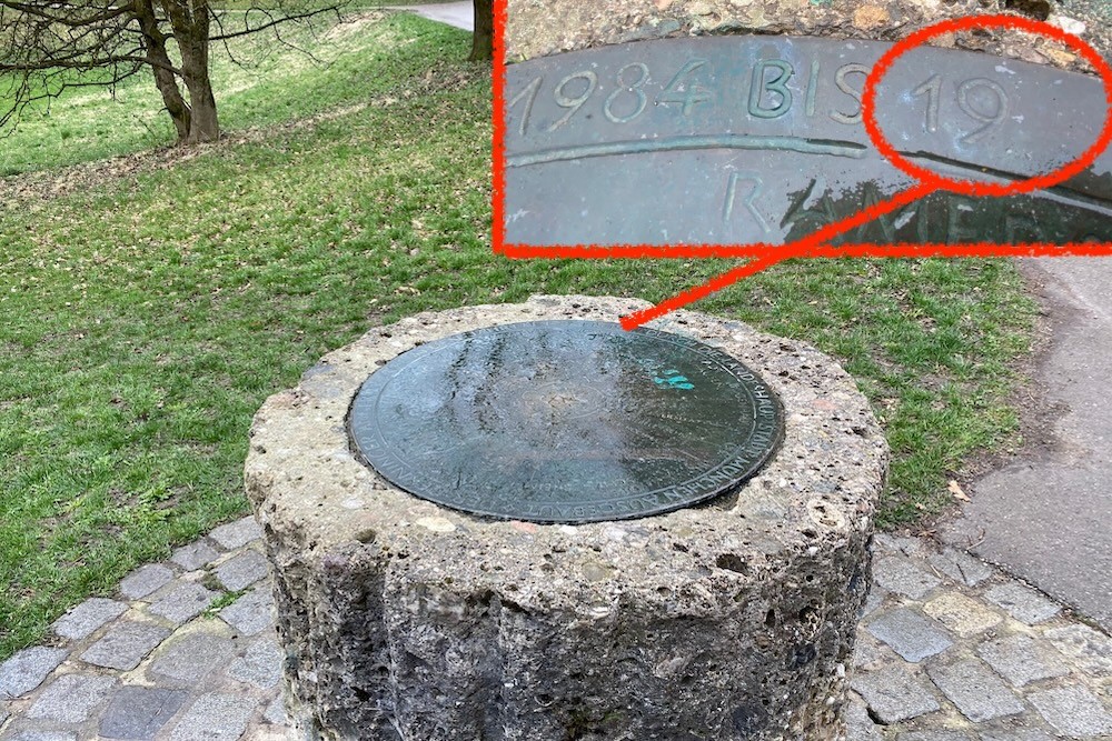 Inschrift der Windrose im Denninger Anger: Bei der Jahresangabe der Fertigstellung des Ausbaus fehlen zwei Zahlen. Aber welche? Fotos: hgb