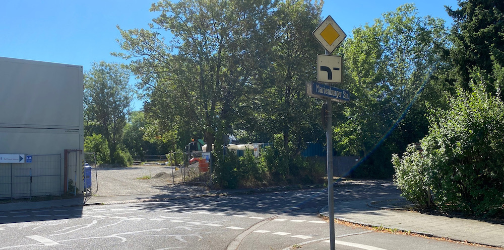 Ende Englschalkinger- / Abzweigung Marienburger Straße: Hier entsteht das Quartier Mariengärten mit 472 Wohneinheiten im ersten Abschnitt. Großes Problem: die Schulversorgung. Jetzt wurde seitens der Stadt erstmals eine seit Jahren geforderte, weitere Grundschule benannt.    Foto: hgb
