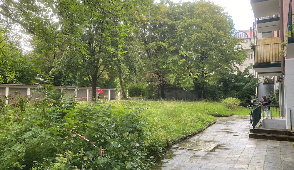 Grüne Idylle hinter der Mauerkircherstraße 17 / 19 – der Eigentümer will den Innenhof bebauen.    Foto: hgb