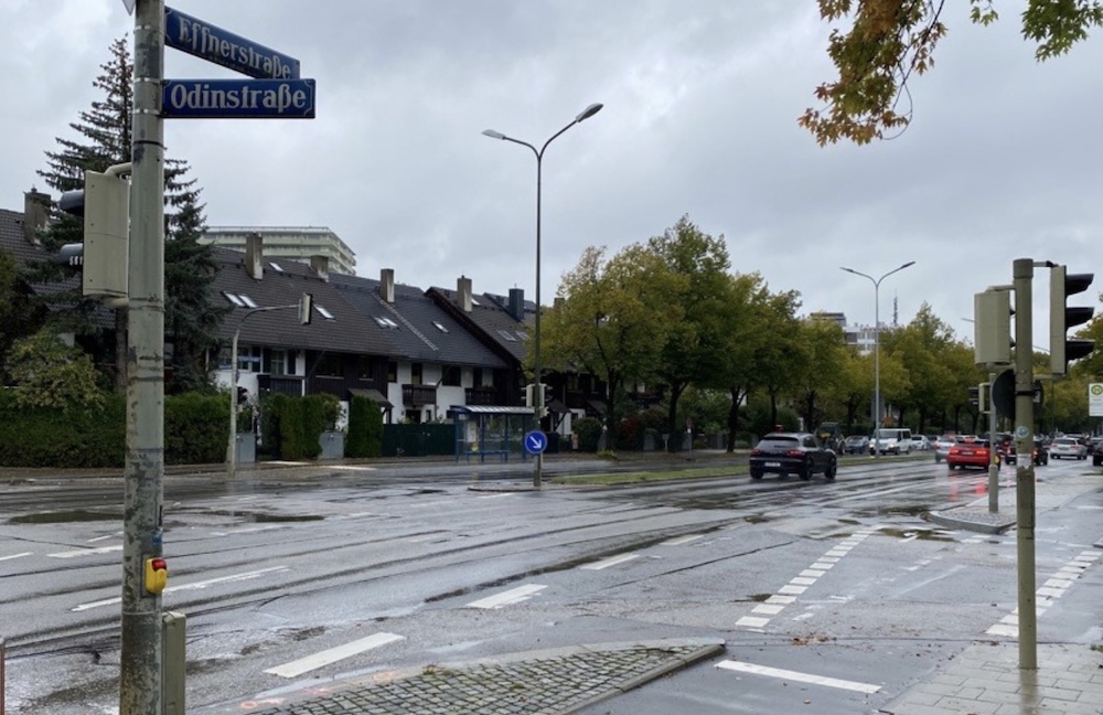 • „Das Mobilitätsreferat soll die Ampelschaltung auf der Effnerstraße so anpassen, dass auch der Radverkehr von der >Grünen Welle< profitiert. Dies betrifft vor allem die Schaltung der Kreuzung Odin- / Effnerstraße im Verhältnis zur Kreuzung Effner- / Englschalkinger Straße.