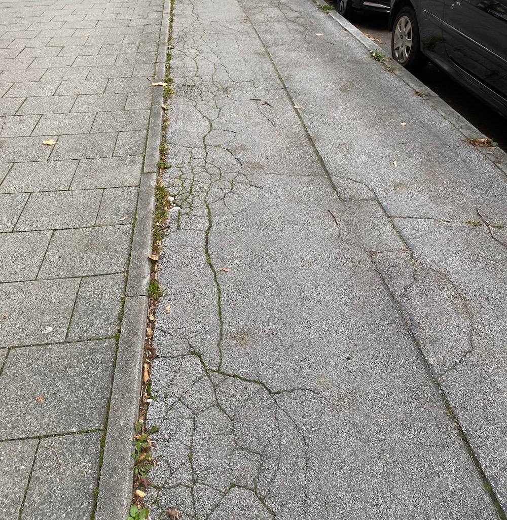 Die Behörde in ihrer Antwort: „Der Zustand des westlichen Radwegs ist dem Baureferat bekannt. Der Asphaltbelag weist in einigen Teilbereichen Risse, Verdrückungen und Altgrabungen sowie allgemein altersbedingten Verschleiß auf. Der Radweg befindet sich in einem verkehrssicheren Zustand. Die Verkehrssicherheit wird durch regelmäßige Kontrollen überprüft, bei Bedarf werden durch das Baureferat kleinere Ausbesserungsarbeiten durchgeführt.“