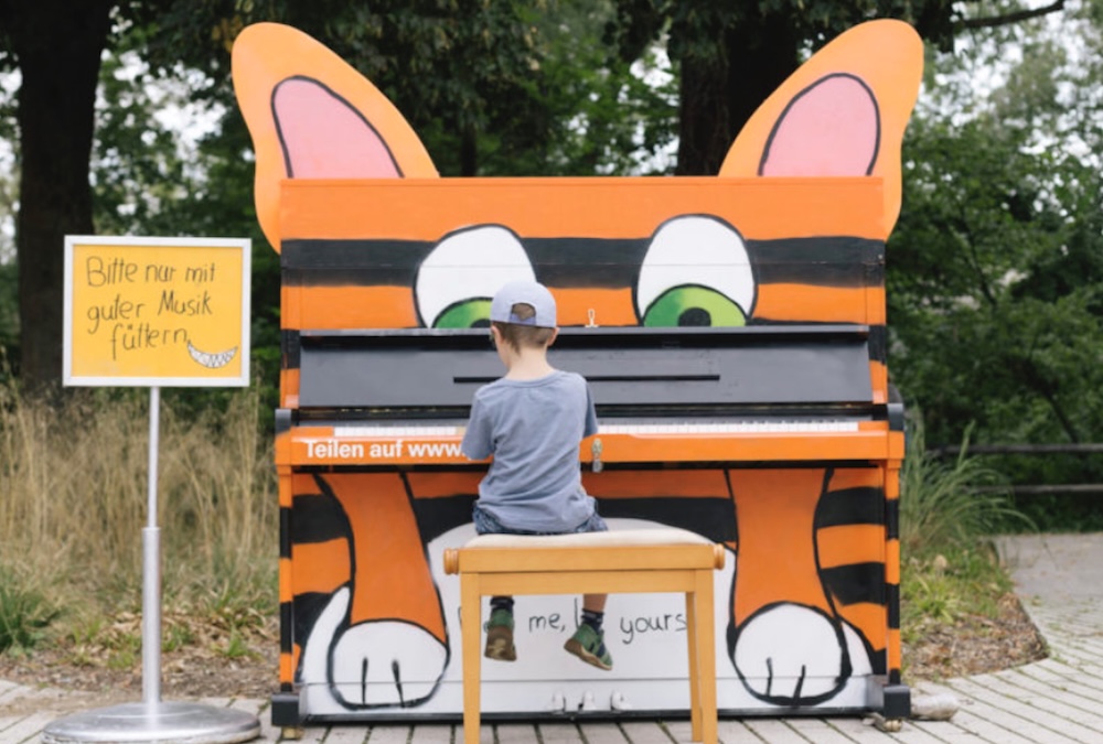 „Tigerklavier“ an der Thalkirchner Brücke, gestaltet von Antonia und Peter Mertens. Pressefoto: Vipasana Roy / Isarlust e.V.)