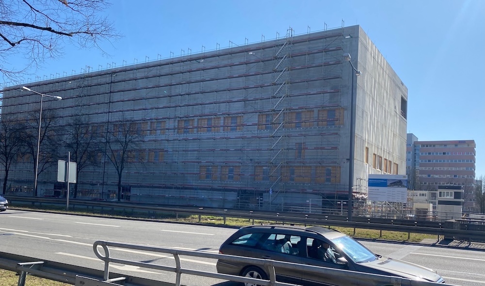 Der Kasten ist sechs Stockwerke entsprechend 27 Meter hoch, 93 Meter lang und 86 Meter breit, hat eine Nutzfläche von12 500 Quadratmetern: Das Proben- und Werkstattzentrums (PWZ) für das Bayerische Staatsschauspiel an der Hohenlindener Straße. Im Mai 2017 erteilte die Stadt den Vorbescheid, im März 2023 war Spatenstich, im März 2025 der Rohbau fertig, ab Dezember 2026 soll die Einrichtung genutzt werden können.