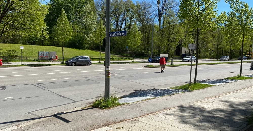 Das Mobilitätsreferat Ende 2021 in der Antwort (Auszüge): Als Alternative zu einem Zebrastreifen wurde die Errichtung einer Lichtsignalanlage (LSA) geprüft. Laut Straßenverkehrsordnung (StVO) darf eine LSA nur dort angeordnet werden, wo dies zwingend ist. Beschränkungen und Verbote des fließenden Verkehrs dürfen nur angeordnet werden, wenn auf Grund der besonderen örtlichen Verhältnisse eine Gefahrenlage besteht, die das allgemeine Risiko einer Beeinträchtigung erheblich übersteigt. Die Voraussetzungen für eine Ampel werden erneut geprüft. Diese Prüfung läuft bereits. Die Bewertung ist voraussichtlich gegen Ende des Jahres abgeschlossen.“